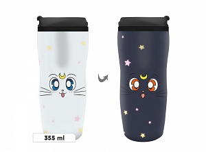 Travel mug with Luna and Artemis from the anime series Sailor Moon. Travel mug made of insulatin...